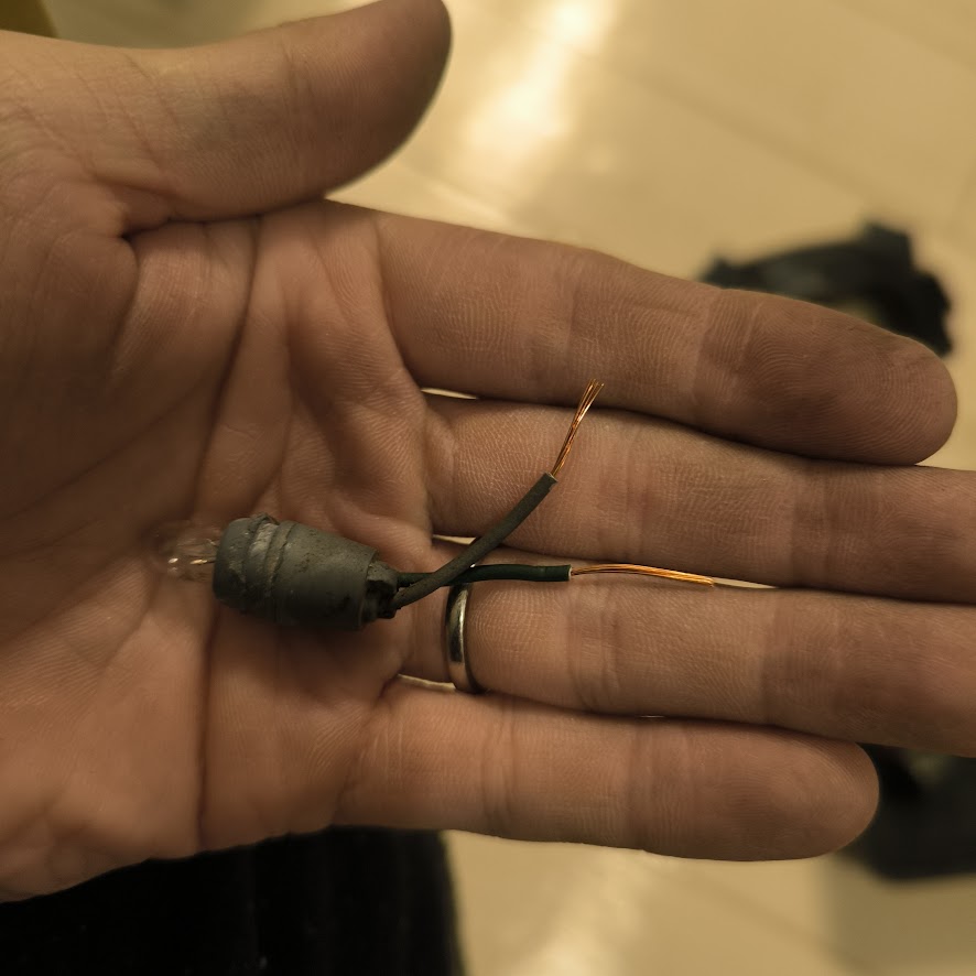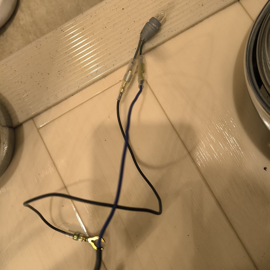 対策方法としてはインジケーターランプを抜く、抵抗器を挟む、整流ダイオードを使用するの三択になります。インジケーターがつかないのはなんとなく嫌だし、抵抗器を挟むとせっかくのLEDの省電力性が犠牲になってしまいます。というわけで配線を加工して整流ダイオードを取り付けていきいます。