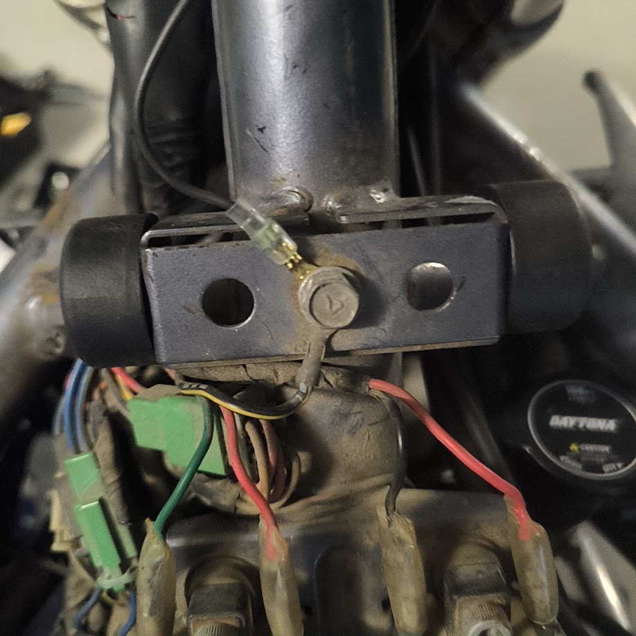 取り付け後はこんな感じ。片側はアース、片側に整流ダイオードを取り付け。
