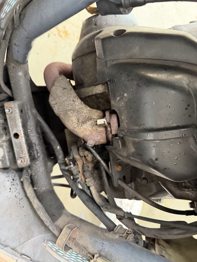 足に使っているジョルノからの排気漏れがあまりにもひどいのでエンジン回りを確認してみると、スタットボルトが脱落していました。。。