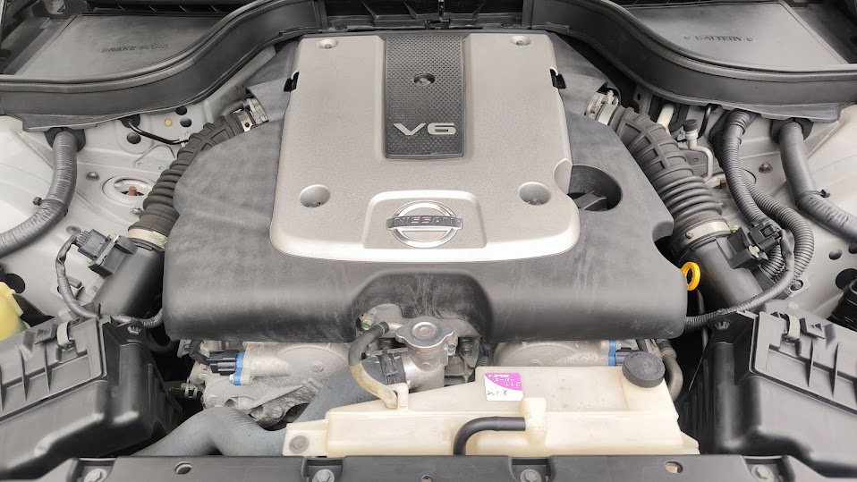 VQ25HRエンジンを搭載。前モデルのVQエンジンから名前が変わっていないものの、完全に新設計のエンジンで、ボンネットを開けてわかる通り、レーシングカーにも採用されている左右対称の吸排気レイアウトになっています。HRはハイレスポンスの略称で、アクセルの操作に素直にふけあがるNAらしい気持ちよいエンジンです。昨今のセダンはダウンサイジングターボの直四が主流なので、多気筒主義の私にとっては、運転していて楽しエンジンです。