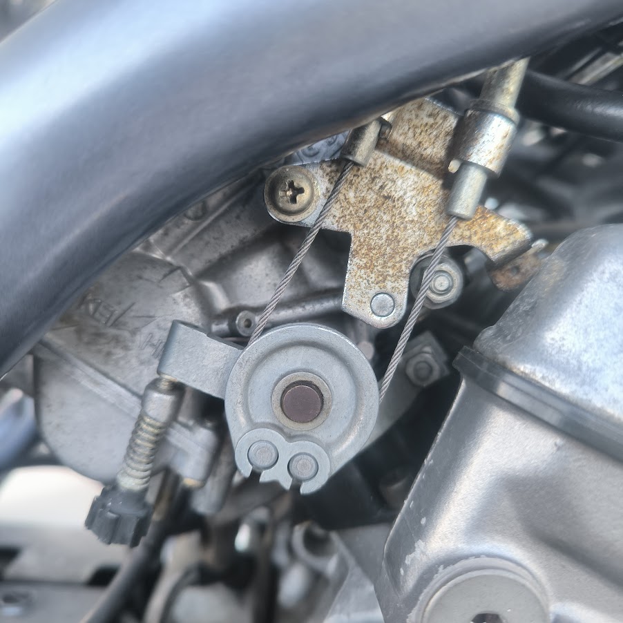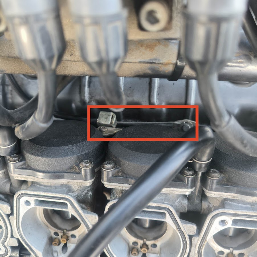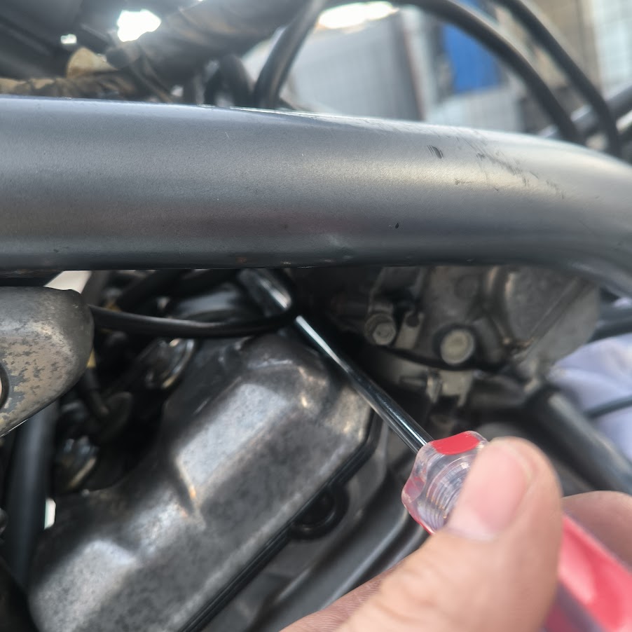 チョークワイヤーを外す際にキャブ側にある金具を取り外すためにネジを緩めますが、その際にネジを落とさないように注意。インテークからエンジン内にネジが落ちたなんてことになれば地獄を見ます。
