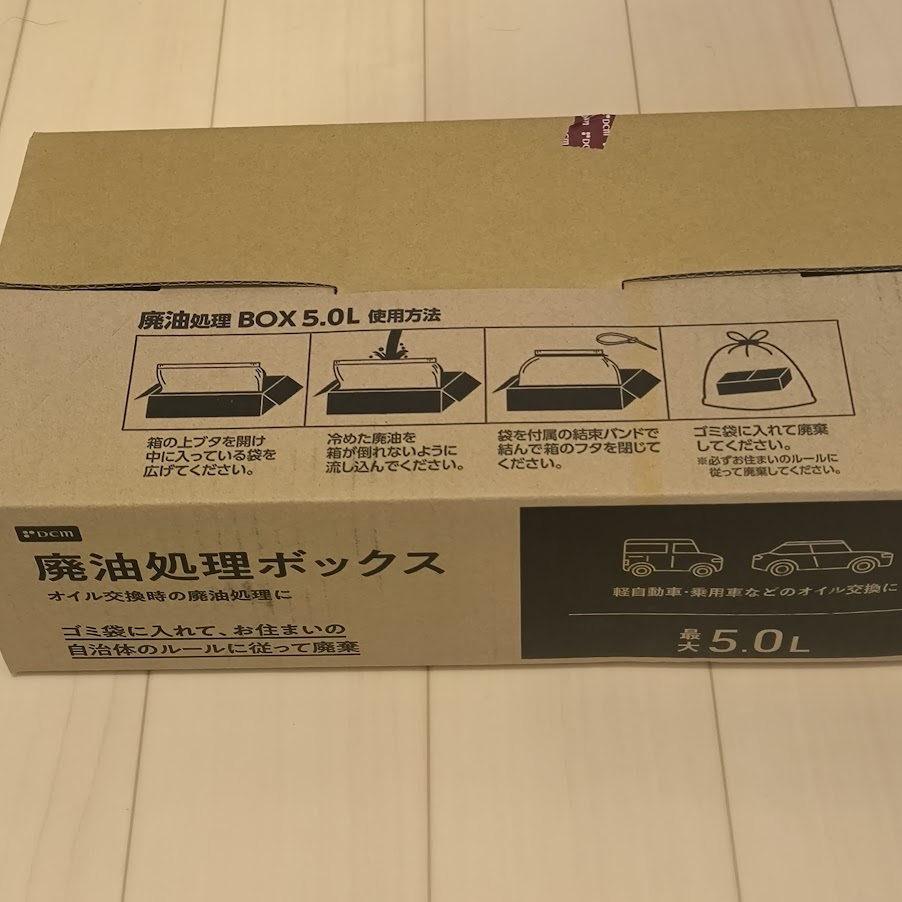 抜いたエンジンオイルを吸収してそのまま捨てることのできる廃油処理ボックス。これはネットよりも近くのホームセンターで購入したほうがおそらく安いです。金額は400円ほど。