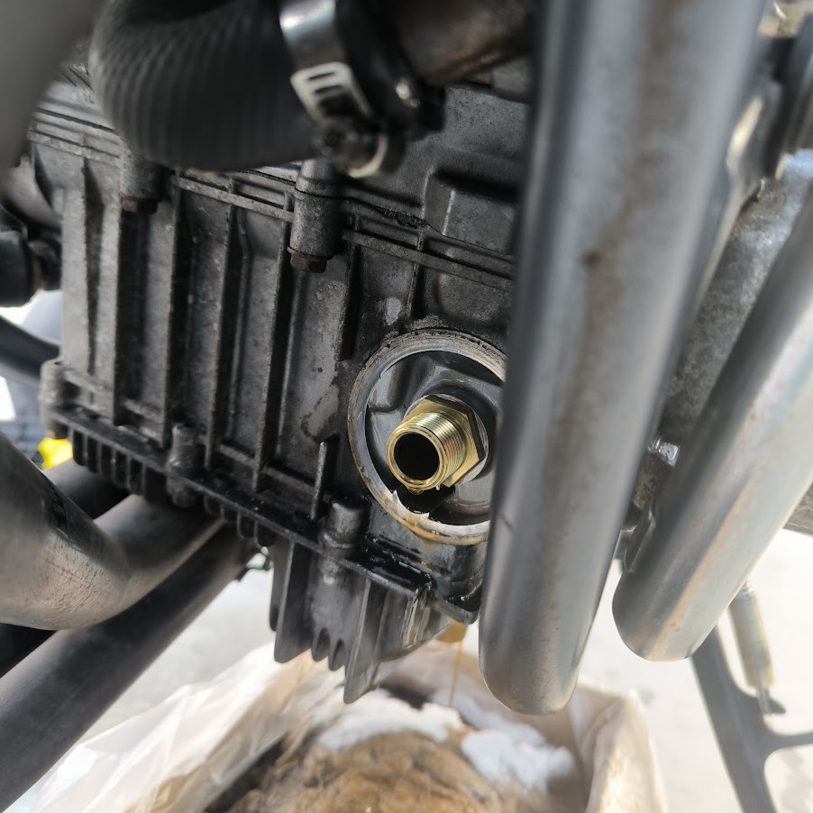 オイルフィルターレンチを取り付けるための工具。これからもバイクをいじる予定があれば、購入を強くお勧めします。ボルトを回す際に工具を何度も差し込むわずらわしさから解放されます。