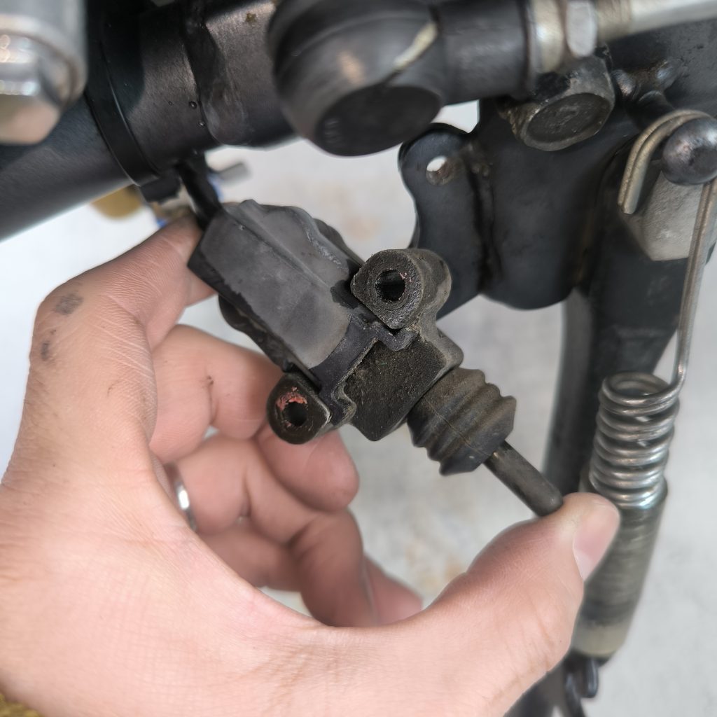 長く伸びている棒がセンサーになっています。これを手で押しても動かない際は残念ながら固着しています。原因はどうやらコイツでした。ゴムを外してパーツクリーナーで洗浄後シリコンスプレーを塗布してスムーズに動くようになりました。