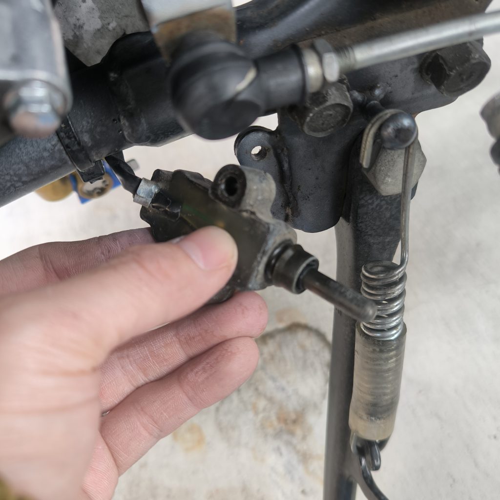 清掃完了後取り付けを行い、サイドスタンドを払った状態で前進するか、サイドスタンドを払わない状態で進もうとするとエンジンが停止するか、以上2点を確認します。