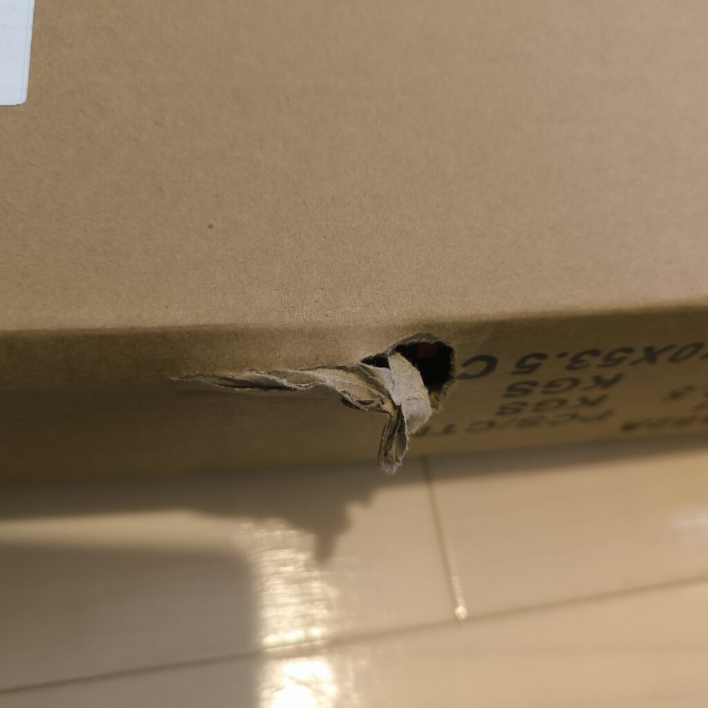 届いてすぐですが箱が破れ中身が一部露出していました。安定の中華クオリティです。
