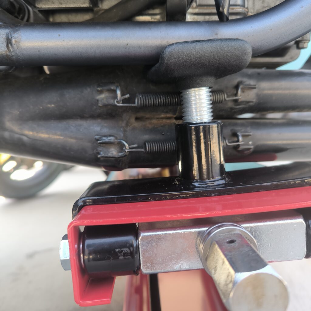 モーターサイクルジャッキはかける場所を調節することで、フロント・リア両方のジャッキアップに使用することができます。