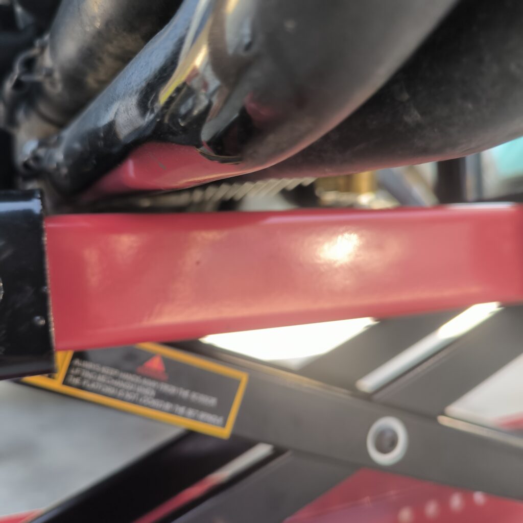 私のバリオスはギリギリ集合管に干渉せずにジャッキアップすることができましたが、車種やマフラーによっては干渉するかもしれません。