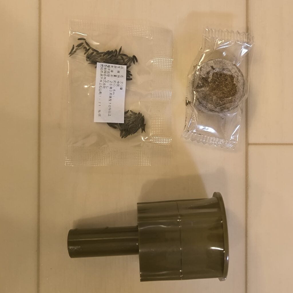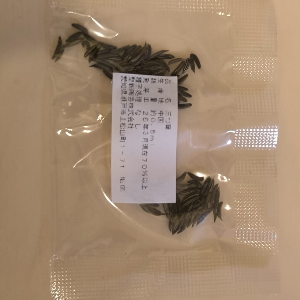 種はランダムに4種類の中から1種類入っており、どうやら三つ葉の種が入っているようです。