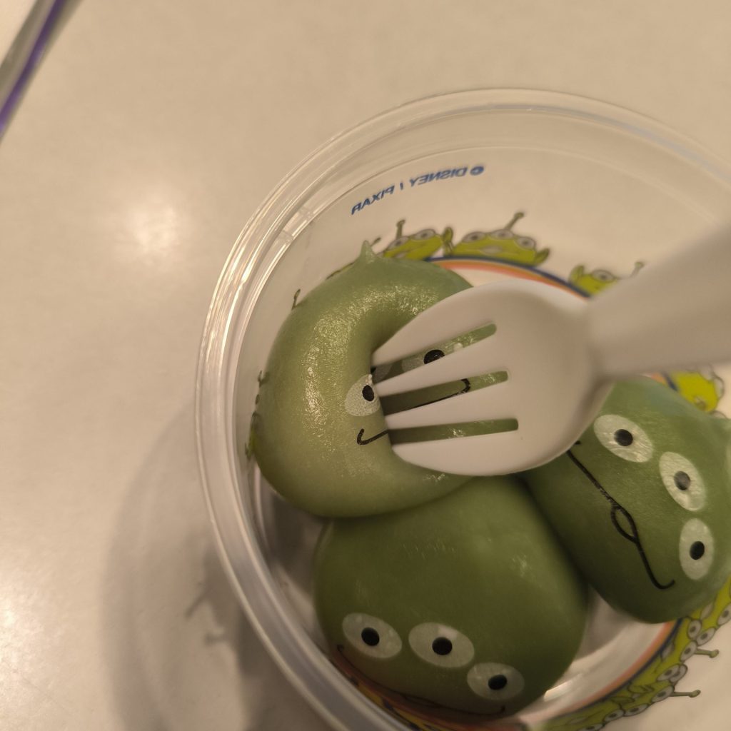 めちゃくちゃ定番!3個入ってますがすべて味が違い、カスタード、ストロベリー、チョコレートの3種類です。写真ではわかりにくいですが裏に返すと味により色が変わるので、なんとなく見分けがつきます。価格も安くかわいらしい見た目で食べてよし!撮ってよし!のフードです。リーズナブルな割には、そこそこおなかが膨らみます。