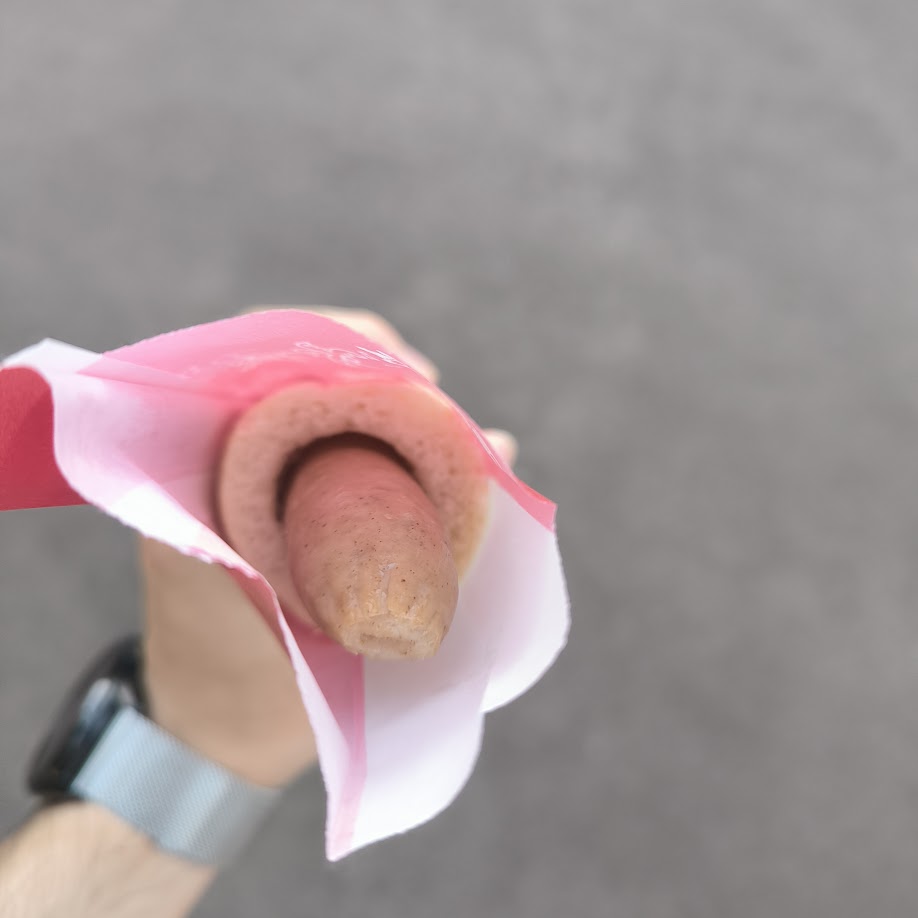 ただのソーセージドッグでしょ、ハイハイって感じで購入しましたが、めちゃおいしい、おなかも膨らむコスパの良い食べ歩きフード!スパイスのきいたソーセージと、厚みのあるパン生地が絶妙にマッチしています。小腹がすいた時はとりあえずこれ!おいしすぎて一人で3本食べました。