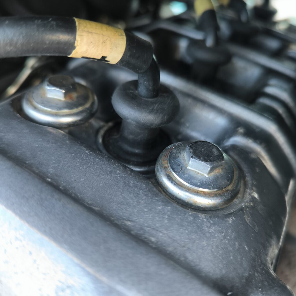 プラグキャップを取り外す前に周辺にゴミや異物がないかを目視で確認、念のために清掃しておきます。