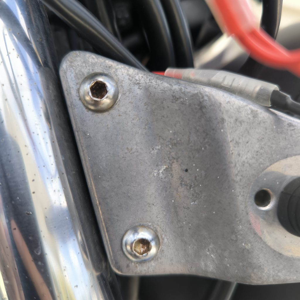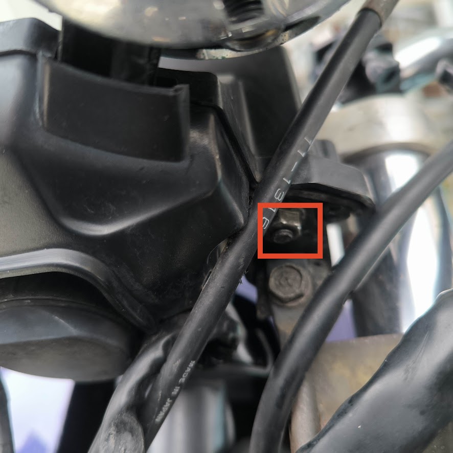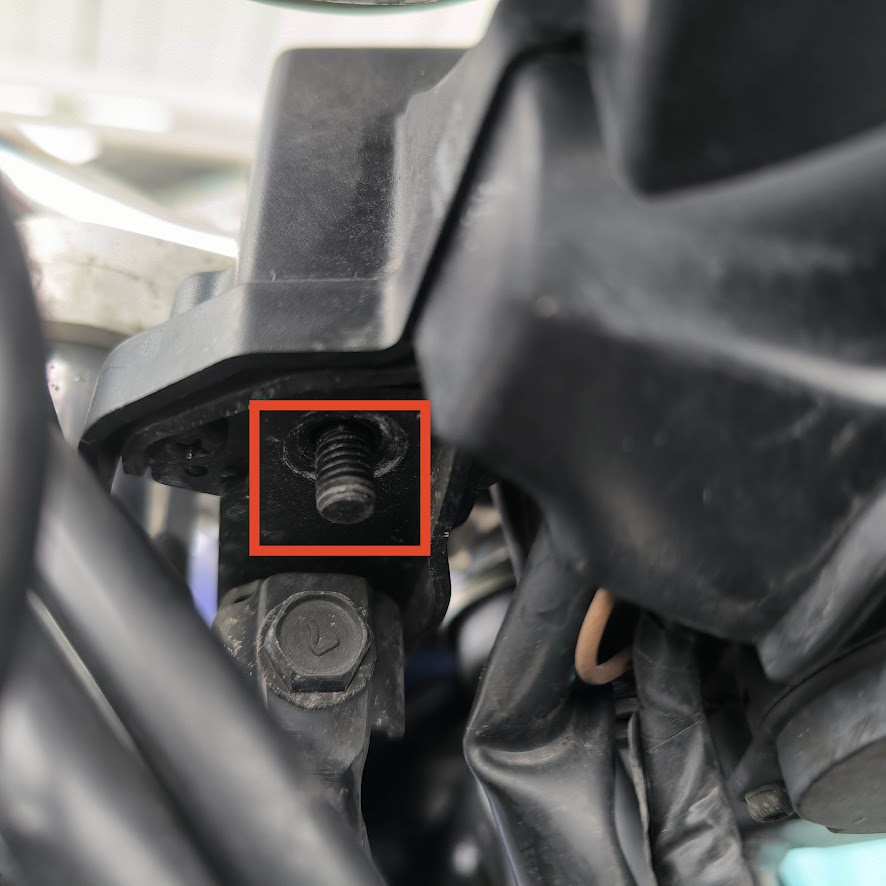 メーターカバーを取り外すために邪魔になるものを取り外していきます。ヘッドライトステーを固定しているボルト4本を緩め、ヘッドライトをずらしておきます。ヘッドライトは完全に取り外さなくても作業自体は可能です。
