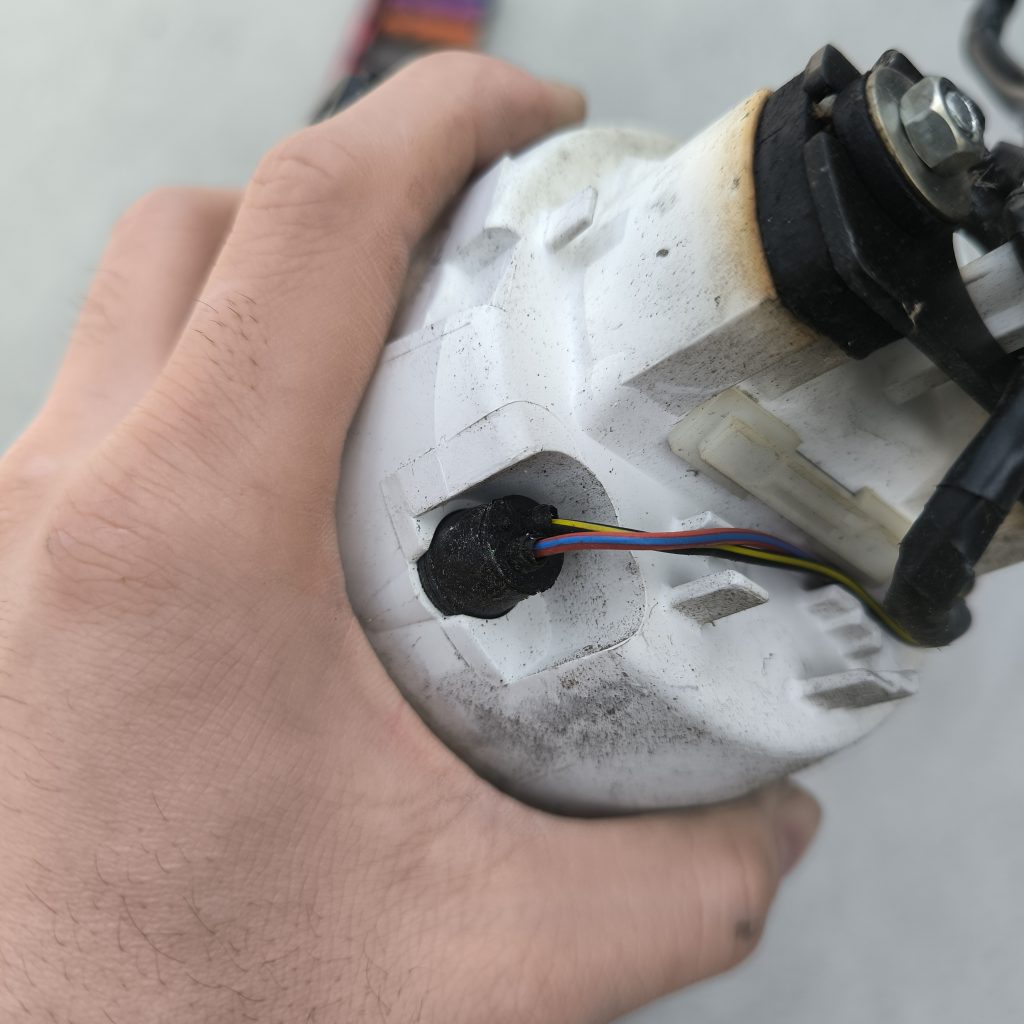 ペンチか何かで先端をつまんで回すと取れます。これも消耗品なので長らく交換していない等あれば交換しておきましょう。メーターケーブルだけは購入した当初に交換してあるので使いまわします。