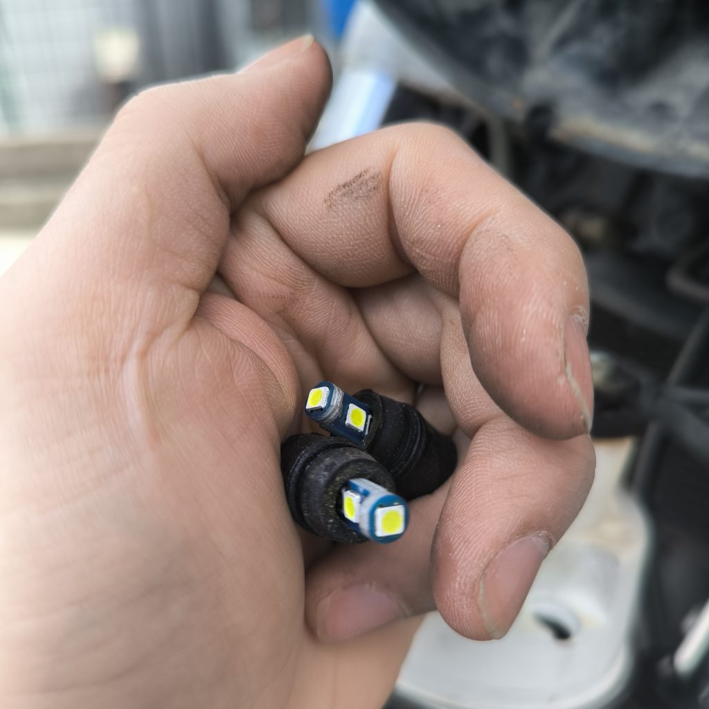 前述したとおり視認性に問題があることが第一ですが、個人的にハロゲン球のぼんやり発光する光り方があまり好きでなく、なおかつウェッジ球が1個単位で販売していなことから少し面倒でしたがすべてLEDに交換しました。