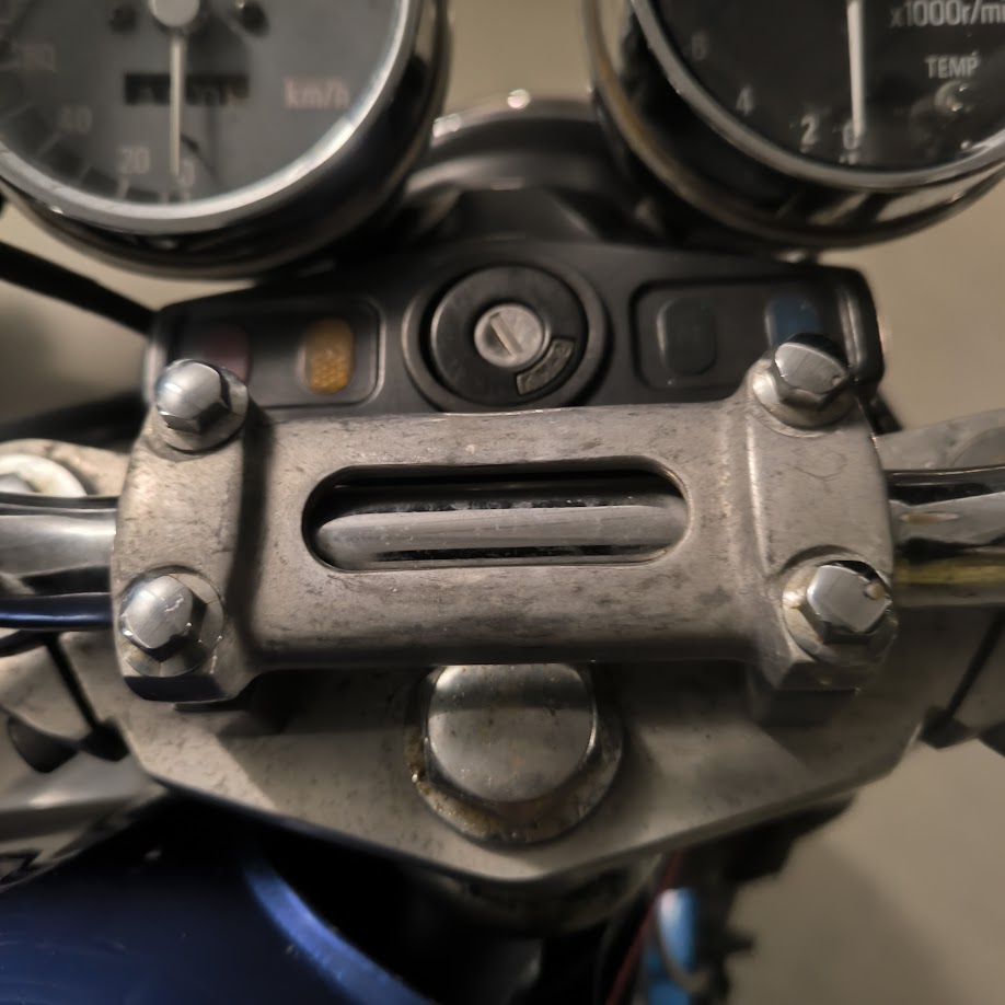 それでは早速取り付けていきます。バリオスはバーハンドルなので、直接固定することもできなくはないですが、ハンドルポストの形が固定するには絶望的な形をしているので、付属のクランプバーを使用します。