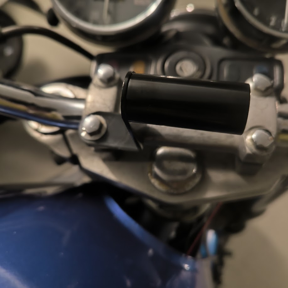 クランプバーはミラーに着けている人が多そうでしたが、すでにラジアルタンクが取り付けられており、これ以上ごちゃごちゃさせたくないので、ハンドルポストに取り付けました。