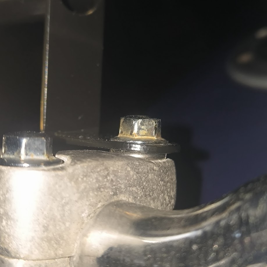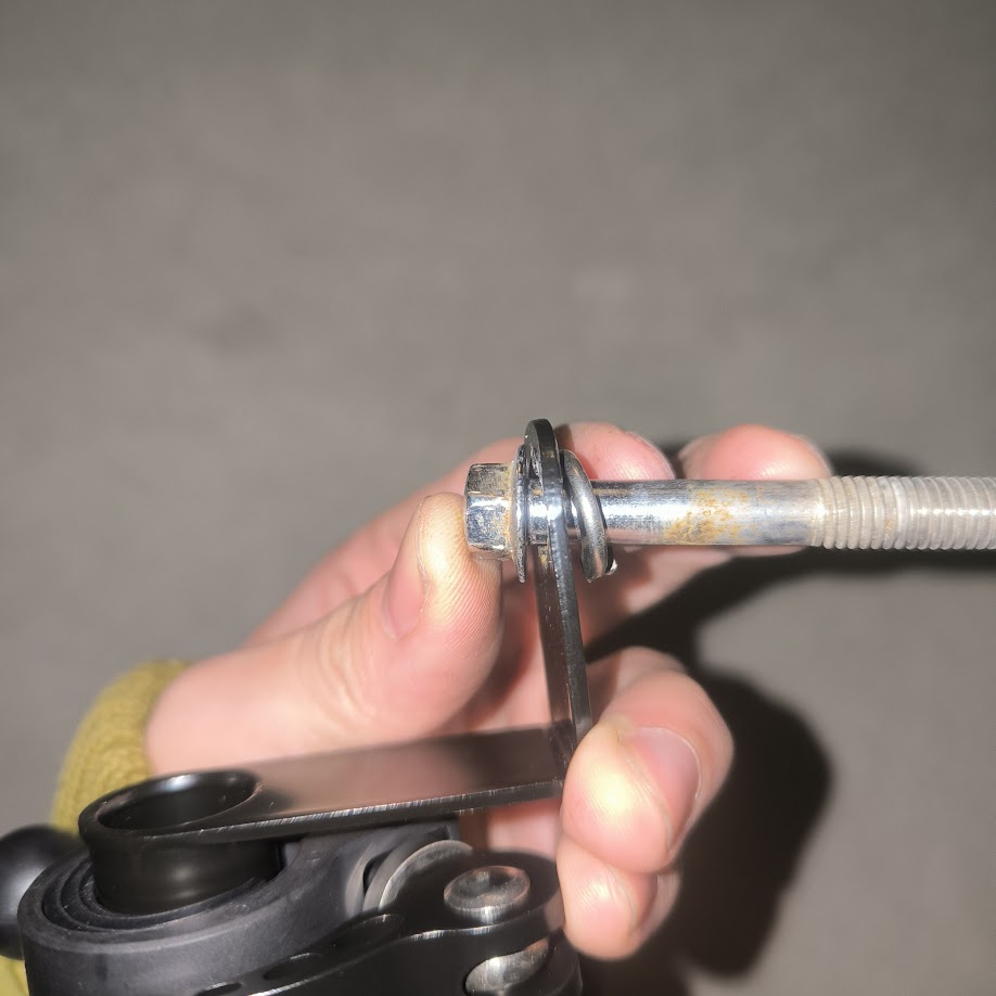 ボルトを1本取り外してこのまま固定したいところではありますが、絶妙にくぼみがありこのまま締め付けるとプレートが歪んでしまいます。横着してそのままつけたものがコチラ↓