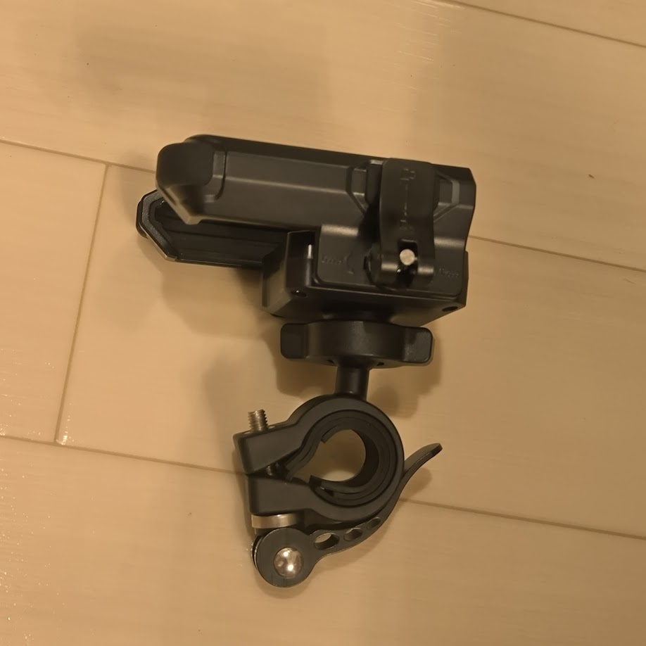 簡易的なものですがクランプバーが付属されていました。ハンドル回りは以外に固定で来る箇所が少なく、できてもスマホをまっすぐに固定できないことが多々あったので、これがあると何かしらと便利です。