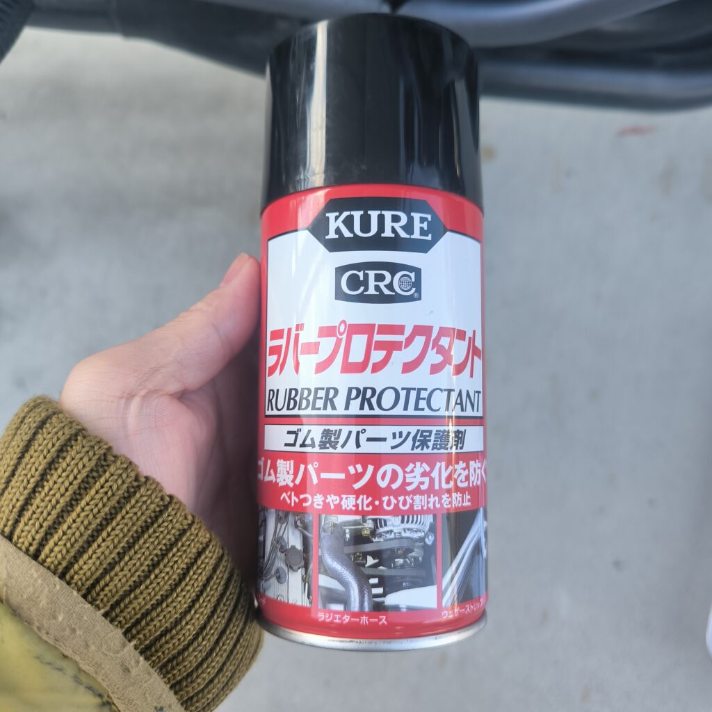気休め程度ではありますがラバープロテクタントも塗布してます。ゴム製品はすぐにカピカピになってひび割れしがちなので、これで少しでもましになってくれていると思います。