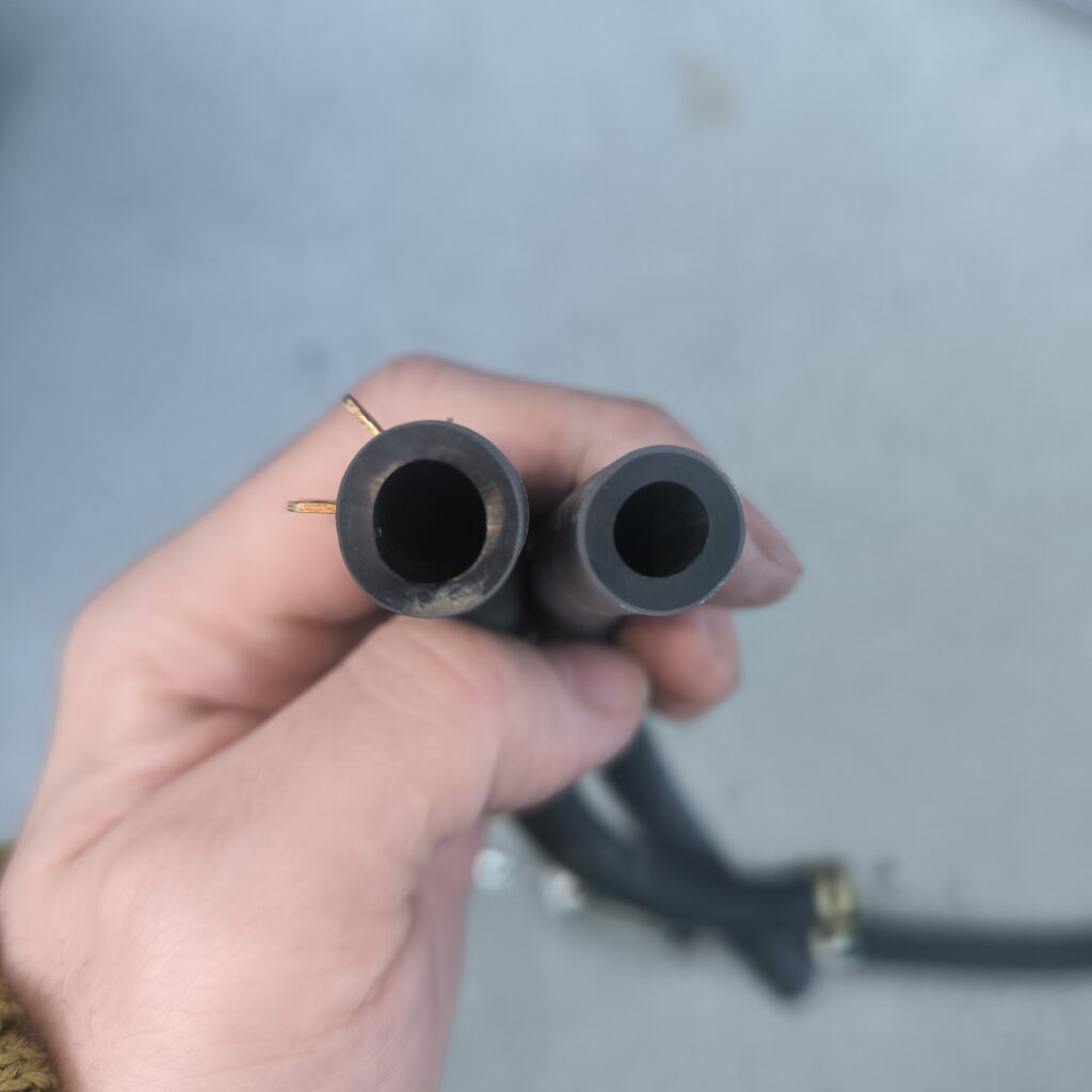 画像を見ていただくとわかると思いますが、左側のホースのほうが少し内径が大きいと思います。