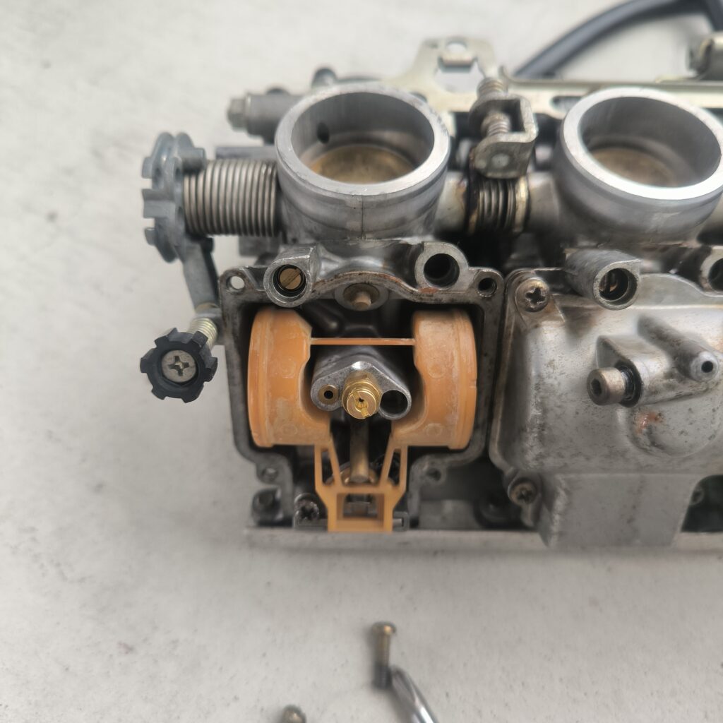 原因は燃料ホースの内径を間違っていた為。フロートチャンバーに液ガスケットが大量に塗られていたのでついでにフロートチャンバーガスケットも交換しました。