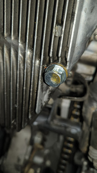 エンジンオイルドレンからのオイル漏れがないかも確認を。ここが漏れると結構面倒です。新品が出る場合はオイルパンの交換、出ない場合は再タップ、ヘリサート加工になります。オイルパンはやたら多くのボルトで固定されているので、取り外しは面倒です。やりたくなければ確認をしておきましょう。