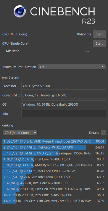 Ryzen 5 5500 CINEBENCH R23 ベンチマークスコア