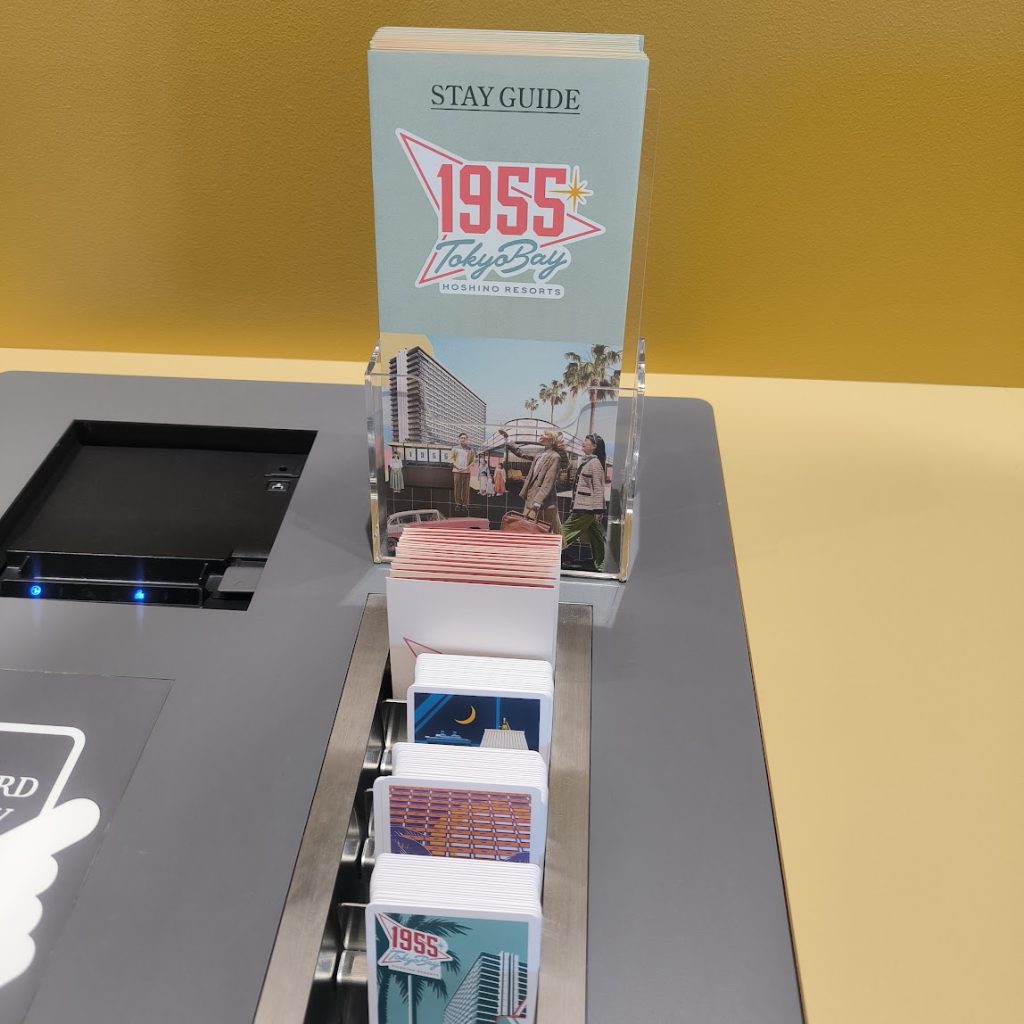 チェックインする際は、3枚あるカードキーを好きな物を人数分登録するスタイル。カードキーのデザインに複数の種類があることが新鮮に感じました。