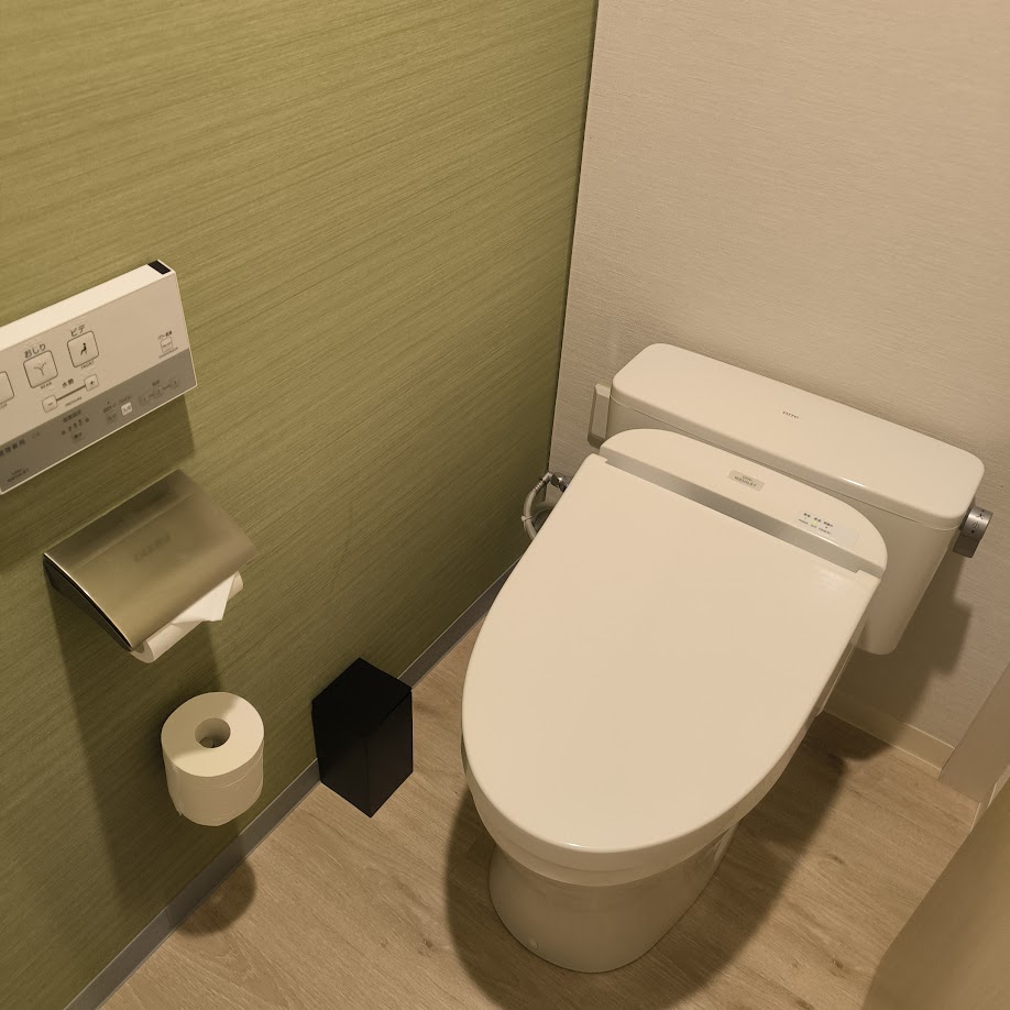 ウォッシュレット完備。これがないと何かと不便、、、流すレバーが遠く流しずらかった。