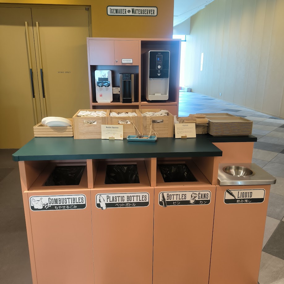 綿棒、コットン、クシ、歯ブラシ、ボディータオルなどの消耗品は部屋の中にはなくセルフサービスになっています。部屋からエントランスまでの移動は面倒なので、抜けもれなく持っていきましょう。なぜこうなったかはSDGsに配慮してとのこと。いわんとすることは分かるけど個人的には部屋に用意してくれてた方が嬉しい。抜け漏れがあったとき、再度取りに行くのが面倒。。。