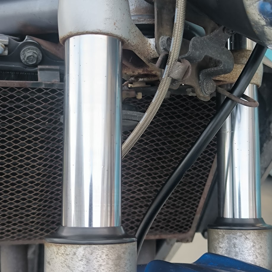 正立フロントフォーク、モノサスのコンビです。倒立のほうが見た目のインパクトはありますが、整備しずらいのと、ネイキッドさにかけるのでこっちのほうが好み。